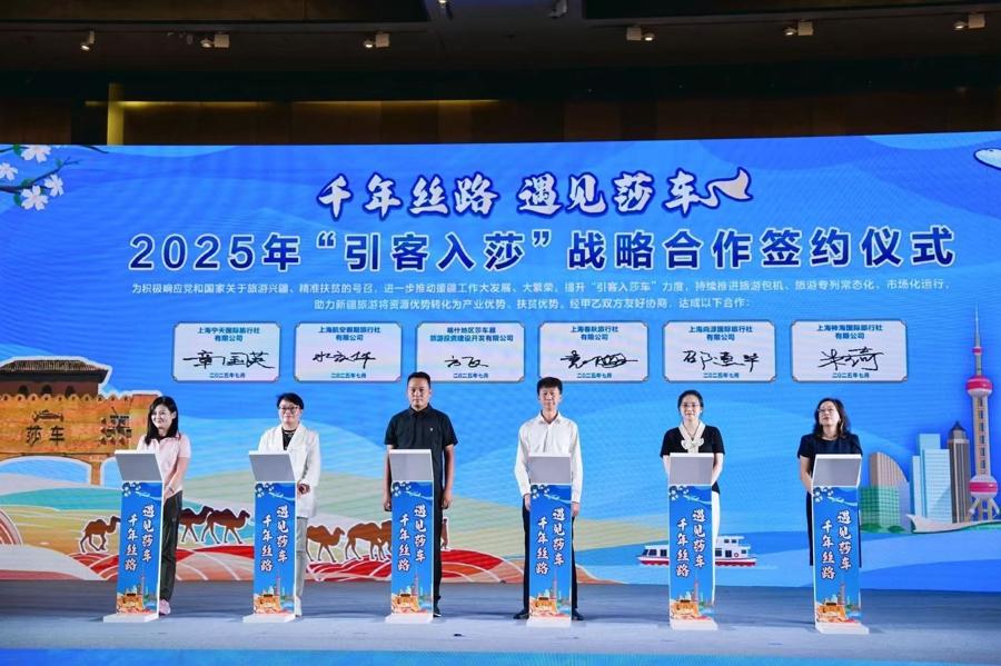 推介會上,莎車文旅企業與上海文旅企業簽署“引客入莎”合作協議,雙方將在客源互送、流量互導、產品開發等領域展開深度合作。記者瞭解到,自2010年開始,上海便對口支援莎車之路。近年來,浦東以開放、平臺優勢與莎車的區位、資源優勢緊密結合,推動莎車文旅產業高質量發展。