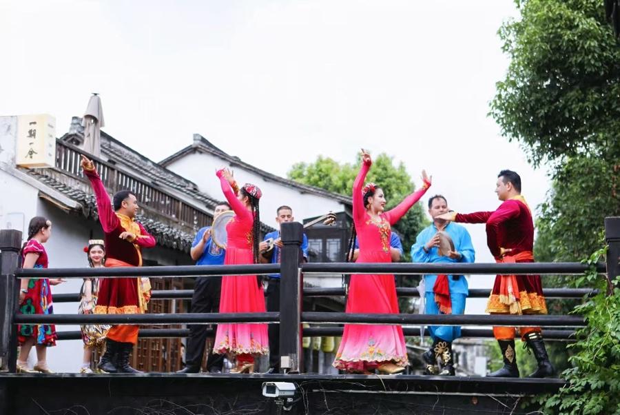 此外,7月25日至29日,莎車文旅走進上海的大街小巷開展文旅融合快閃活動,莎車文旅推介官們身着絢麗少數民族服飾,驚豔亮相上海豫園、外灘、新場古鎮、中華藝術宮、水博園等上海地標性景區,通過歌舞表演、特產品嚐、文創小禮品贈送等形式與市民互動,吸引衆多市民及外國遊客駐足拍照。
