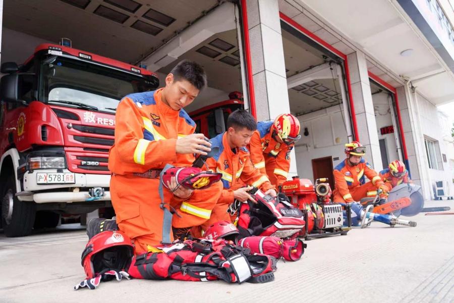 在金山區消防救援局學府特勤站,消防救援人員也在緊鑼密鼓地開展防颱防汛準備工作。他們正對防汛抗臺裝備器材進行清點、維護,重點對救生衣、水域救援服等水域救援裝備進行全面清查和檢查測試,細緻落實裝備器材的維護保養工作。同時,對執勤車輛、隨車器材、通訊設備和防颱防汛必需物資進行全面檢查保養,確保器材裝備不帶故障、不留隱患,保障在事故發生時,能夠第一時間迅速反應、科學處置,最大限度地減少人民羣衆的損失和危害。