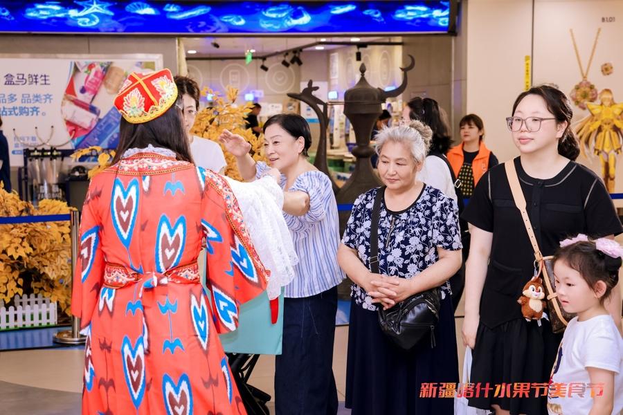 在盒馬鮮生的門店裏,“月月有主題” 活動區域前排起了長隊。莎車恐龍蛋那濃郁的果香和多汁的口感,吸引了衆多上海市民駐足,大家紛紛上前試喫、購買。“這水果比李子甜,還帶着杏香,以前從來沒喫過!” 市民張女士試喫後,立馬下單了兩盒。正在復購的白領張女士也表示:“早就聽說七月主打恐龍蛋,一直盼着呢。這水果品質很穩定,接下來每個月都想看看喀什會有什麼新水果上市。”