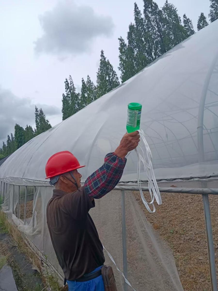 7月29日,在上海強豐果蔬種植專業合作社,工作人員對60個果蔬大棚進行加固處理,修補棚膜20個,同時對低窪地做好排澇泵閥準備,預防可能帶來的降雨積水。據悉,上海強豐果蔬種植專業合作社共有果蔬1000畝,其中蔬菜種植約600畝,日均採摘蔬菜約2000斤。後續,合作社還將根據降水情況開展蔬菜搶收工作。