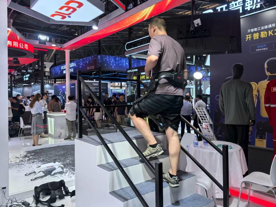 在今年11月舉行的第八屆中國國際進口博覽會(進博會)上,志願者們將穿着輕量化助行外骨骼機器人,在場館做服務保障工作。這是記者今天從中國電科21所獲得的消息。該公司已與進博會達成協議,將提供近200套外骨骼設備。該產品也亮相了2025世界人工智能大會。