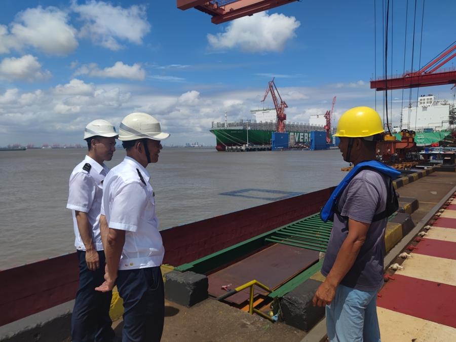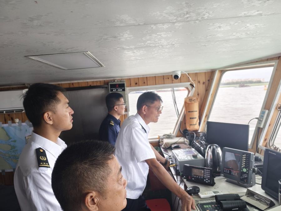 聯合長航公安開展防颱防汛聯合巡航,重點排查客渡船、危險品船等40餘艘次,現場整改纜繩磨損嚴重等隱患5處。同時,崇明海事積極開展應急力量抽查點驗,確保應急力量處於隨時可用狀態。做好內部安全自查,對海事躉船、巡邏艇開展全面檢查,備足應急物資,嚴格執行領導帶班和24小時值班制度。