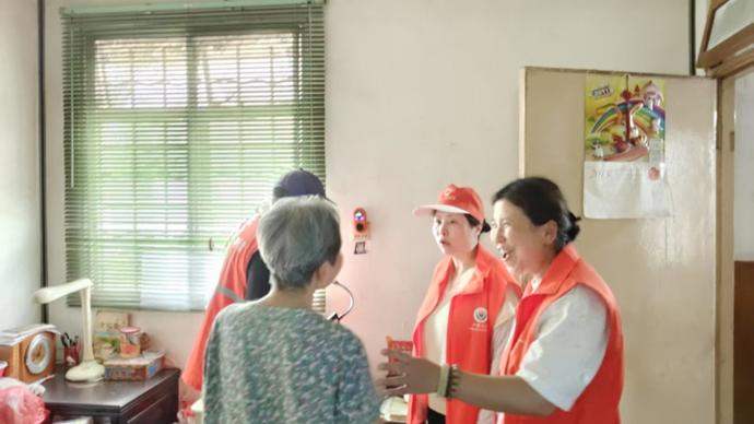 上海風大雨急。今天中午11點,靜安區彭浦新村街道送餐員王師傅頂風冒雨準時出現在共和新路4555弄居民區,他邊熟絡地打招呼邊把熱乎可口的飯菜遞到81歲的獨居老人劉阿姨手裏。他提醒老人關好門窗、儘量不要出門,“颱風天風大雨大,常用藥缺嗎?您有啥需要的提前跟我說一聲,我送餐的時候順便幫您帶過來就行。”