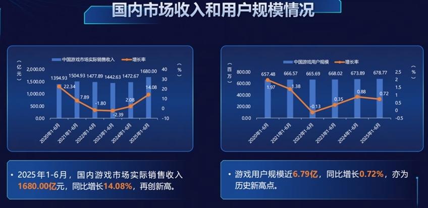 作爲文化與科技深度融合的典範,遊戲產業的正向價值正在不斷被髮掘和顯現,已成爲推動文化繁榮、發展新質生產力、助力科技自立自強的重要力量。據統計,今年1-6月,國內遊戲市場實際銷售收入1680億元,同比增長14.08%;遊戲用戶規模近6.79億,同比增長0.72%,爲歷史新高點。