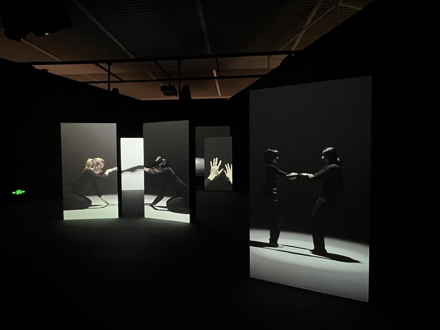沙特藝術家的創作,既是對文化遺產的守護,亦是對現代性的勇敢擁抱。在名爲《柔體機械/遙遠引擎》的影像表演作品中,藝術家以“呼吸”爲核心,探索身體機能與情感潛能。舞者通過個體與羣體交替的動作,展現心理與身體的震顫。觀衆可在八塊屏幕間穿行,同步感知自身呼吸與存在,作品詮釋了呼吸作爲人類最脆弱又最強大力量的主題。