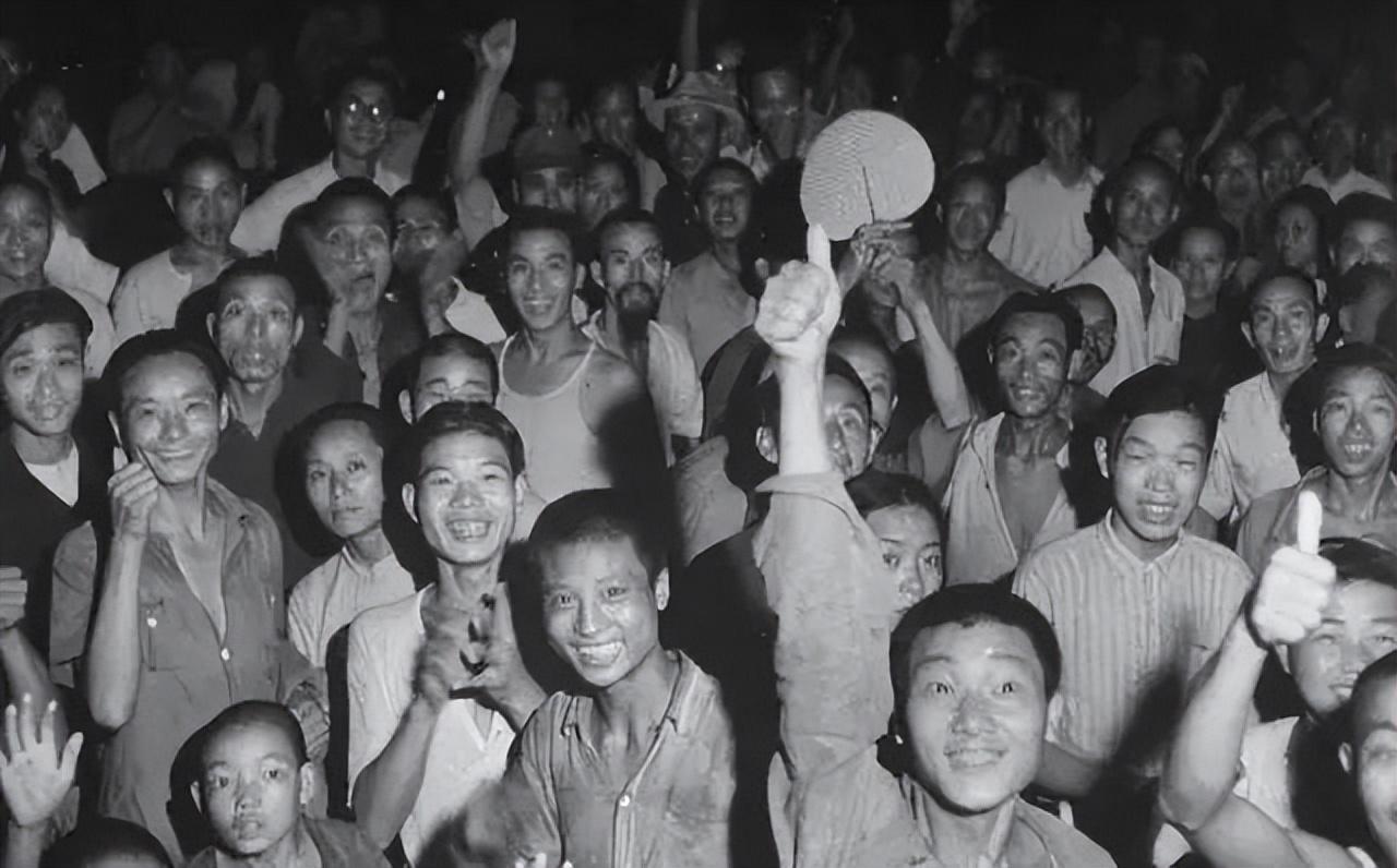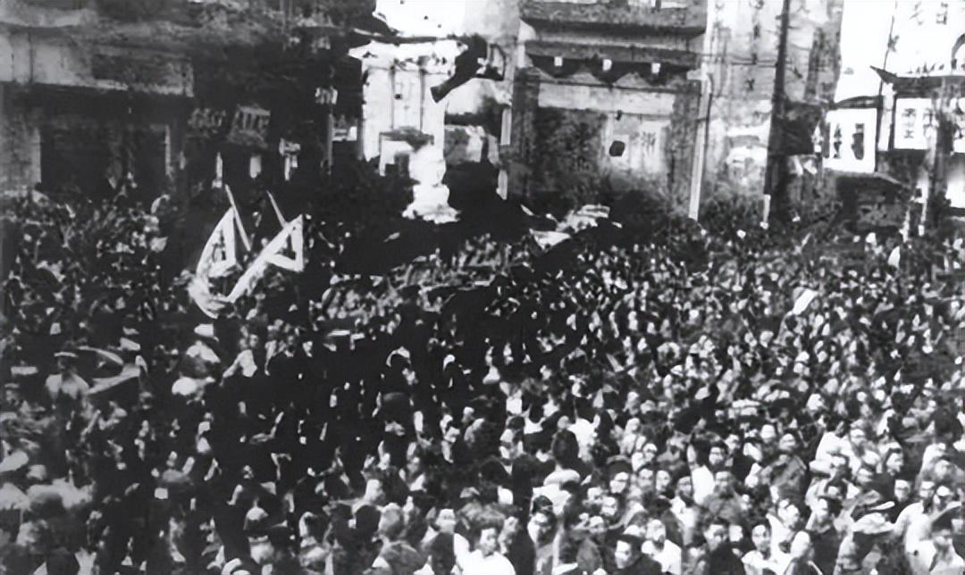 日本無條件投降後,重慶街頭狂歡的民衆。
