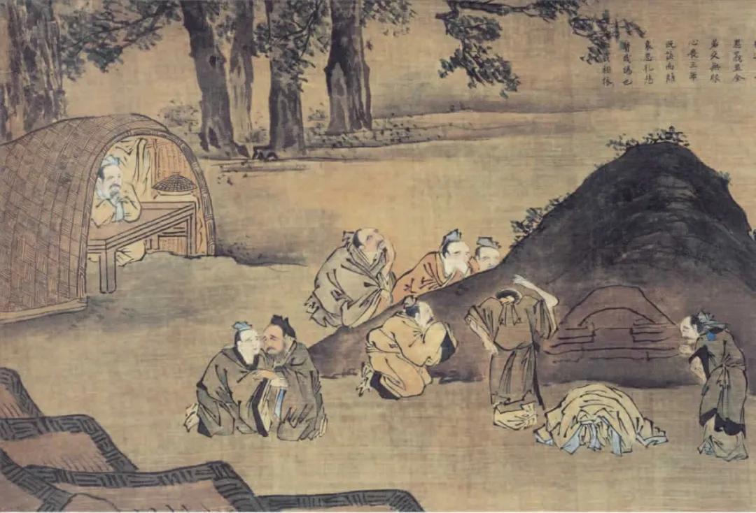 衆弟子服喪三年後訣別離開,而子貢在孔子的墓旁建了一個小屋,又守喪了三年才離開。