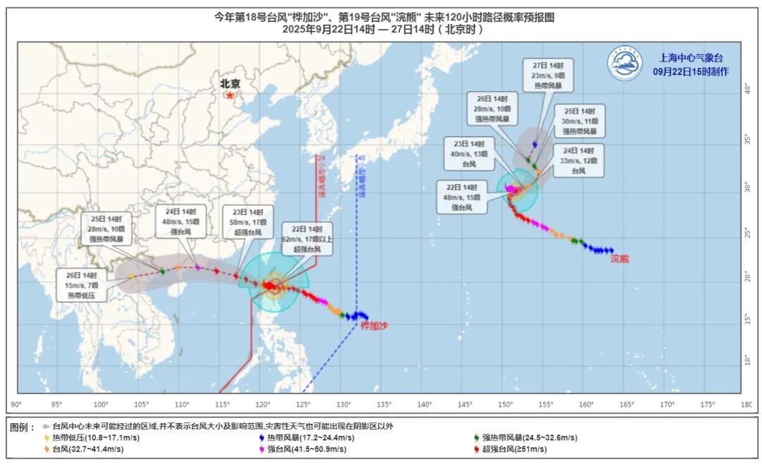 預計,“樺加沙”將以每小時20公里左右的速度向西偏北方向移動,並將於23日凌晨移入南海東北部海面,將於24日在廣東深圳到徐聞一帶沿海登陸(強颱風級或超強颱風級,14-16級,45-52米/秒),登陸後強度逐漸減弱。恰逢天文大潮期,“樺加沙”將給華南造成嚴重影響,去往當地出差、旅行的朋友需密切關注。