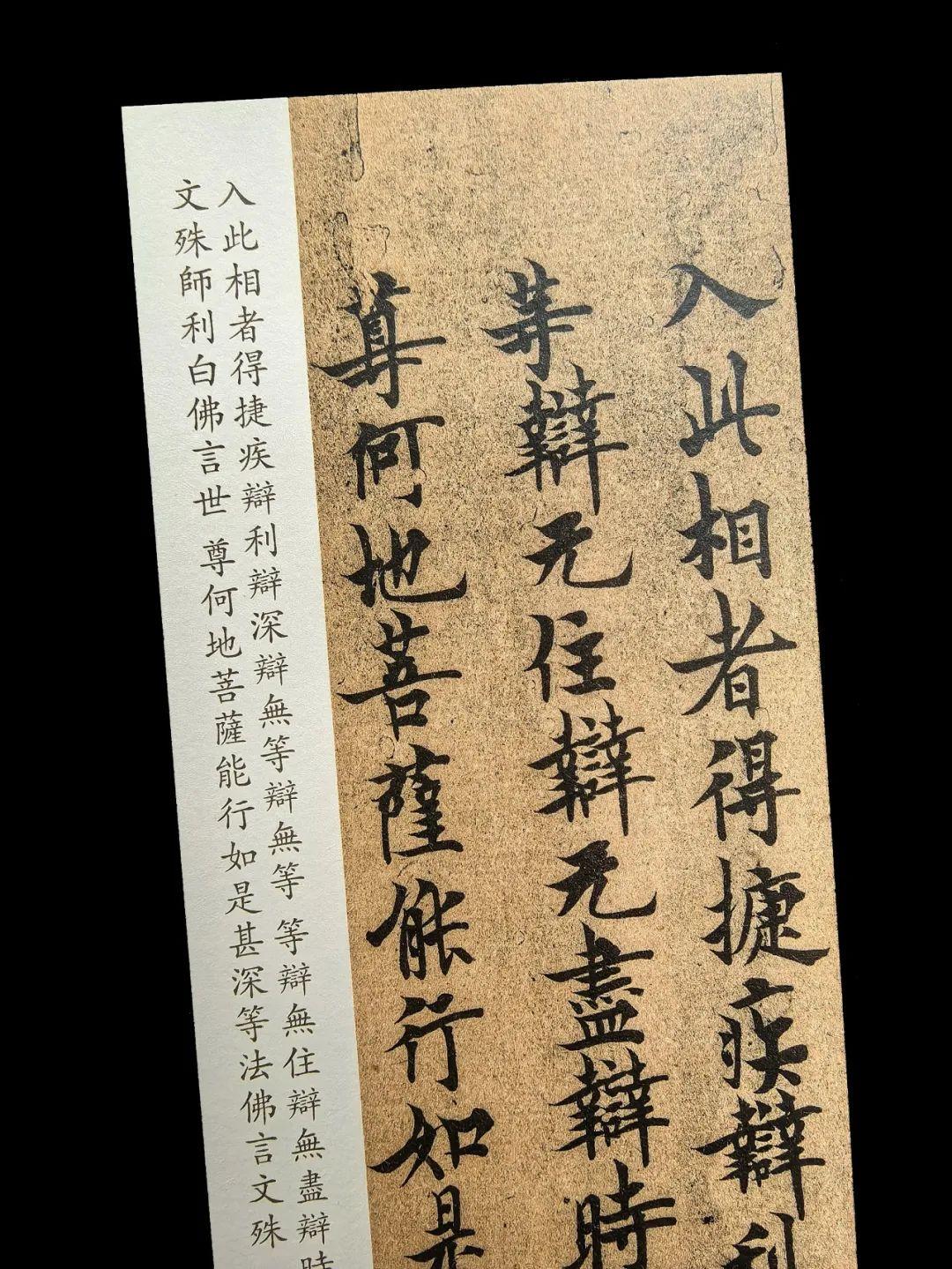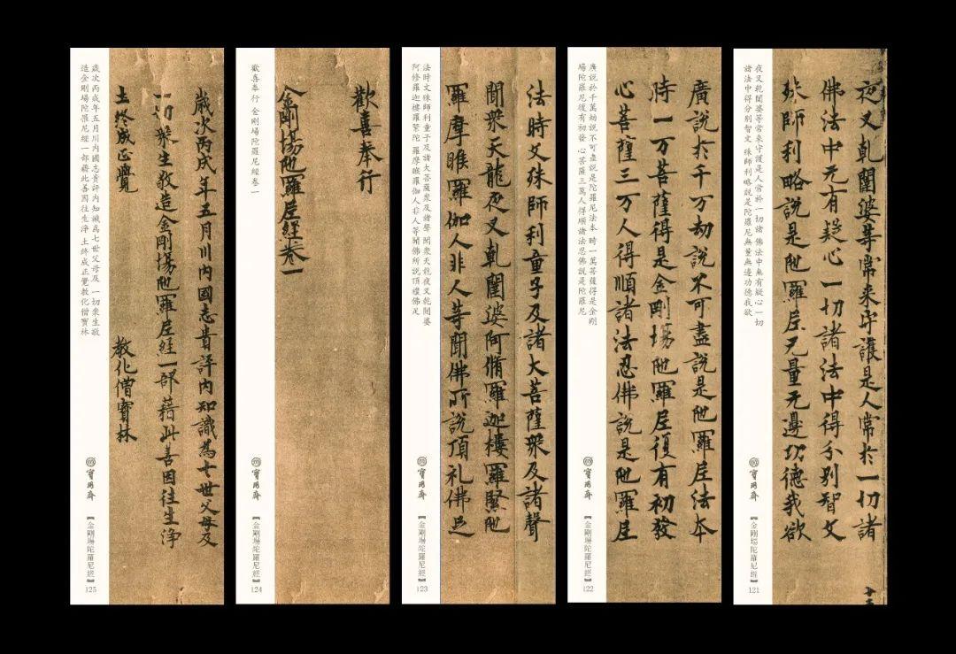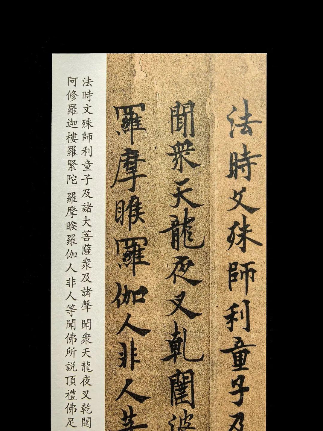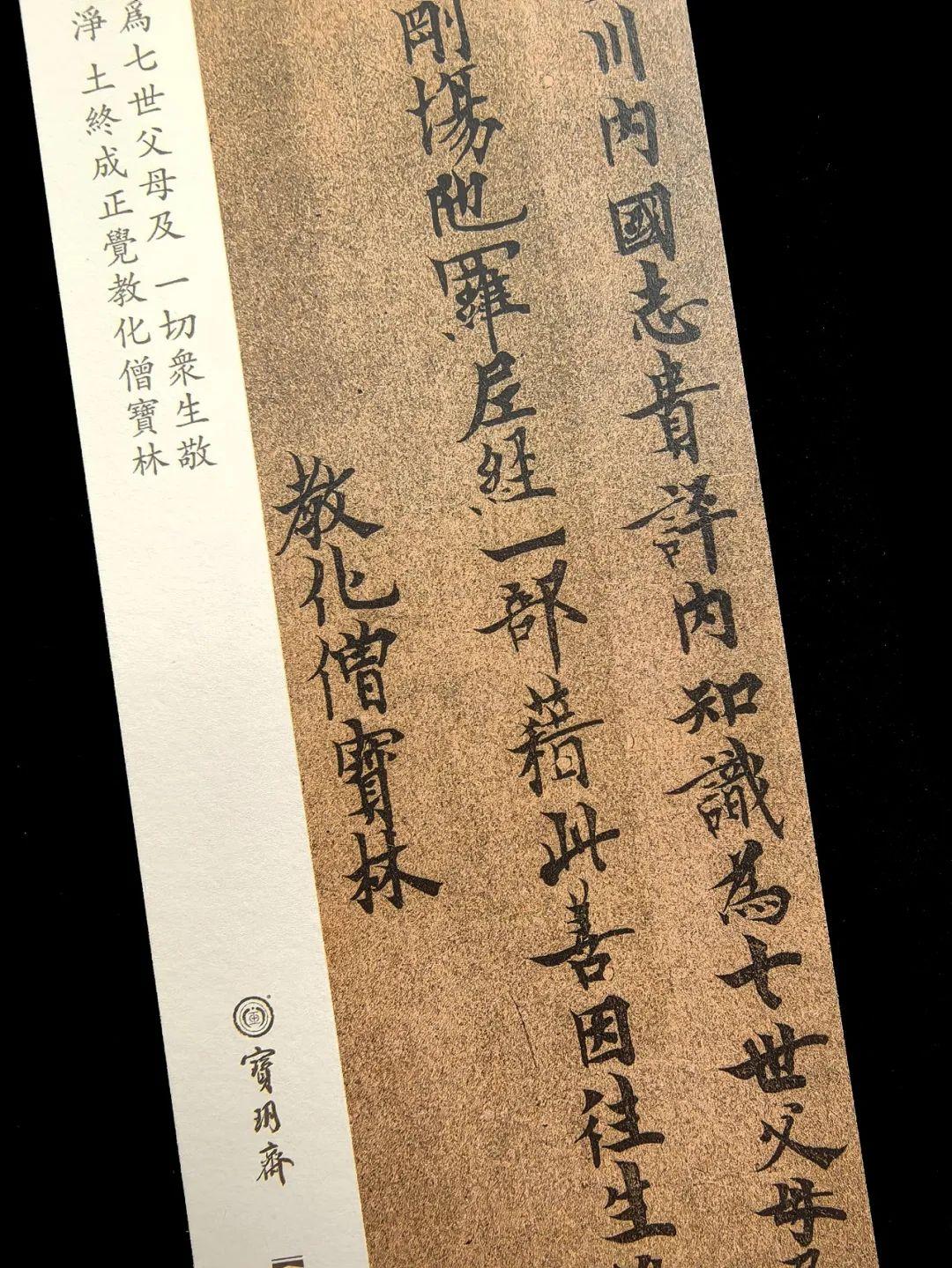 是卷末落款爲教化僧寶林,書於朱鳥元年(六八六年),結體瘦勁挺秀,筆劃勻稱,通卷八米多長無一懈筆,書風與上海博物館藏唐人書《起世經》酷似,離歐陽通書《道因法師碑》相距二十三年。而位於奈良長谷寺的《長谷寺法華說相圖銅版銘》,與《金剛場陀羅尼經》的字形、用筆極其相似,或出自同一人之手,爲日本古代金石文中的精品。現以原大全文影印字卡,爲學習歐楷再添一臨習範本。