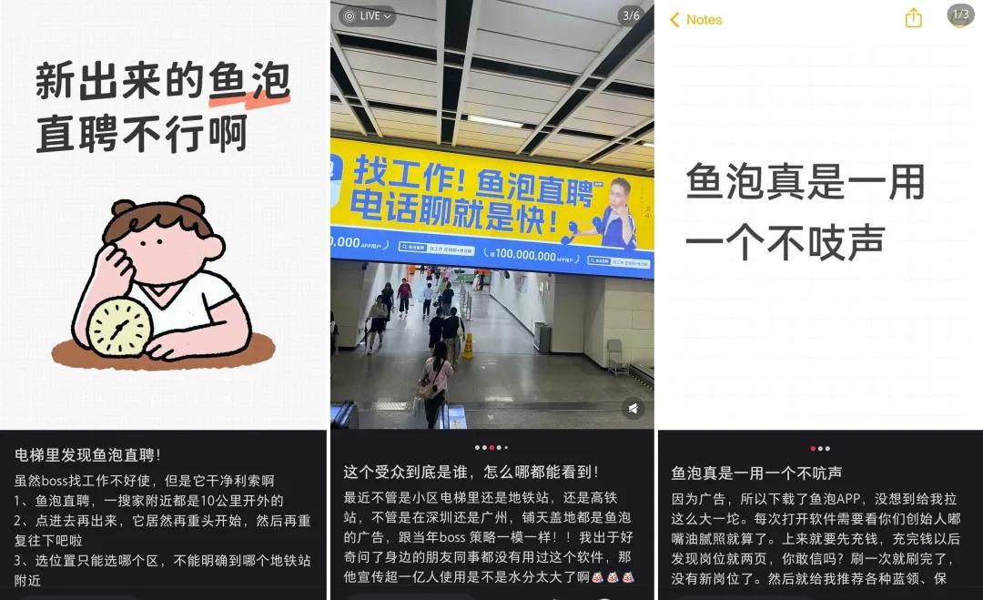 從今年4月起,魚泡直聘進軍市場規模更大的白領招聘賽道,在上班族出沒的場景密集投放廣告。綜合市場分析有兩點原因:一方面是大量的傳統藍領變成“新藍領”,從事城市服務業。另一方面是年輕人“就業下沉”,形成了更廣闊的市場空間。