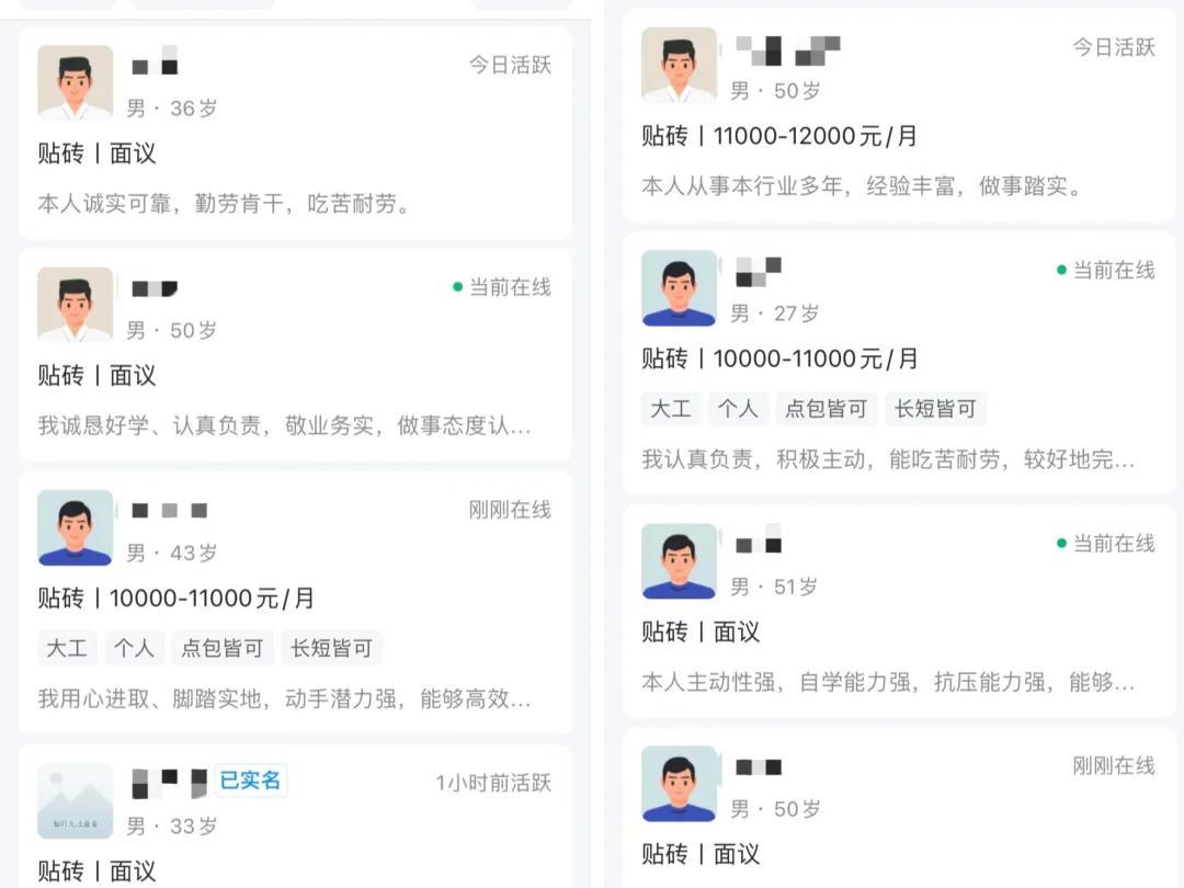 根據2021年住建部數據,中國建築業從業者高達7000萬,絕大部分由農民工組成。以往,農民工找工作80%依賴於“靠老鄉帶、勞務市場排隊、天橋下馬路邊被動等”的傳統模式,招聘信息差往往能困死一個人——很多人一輩子跟着一兩個包工頭,沒議價權,活幹完只能回家乾等,不知下個工地在何處。