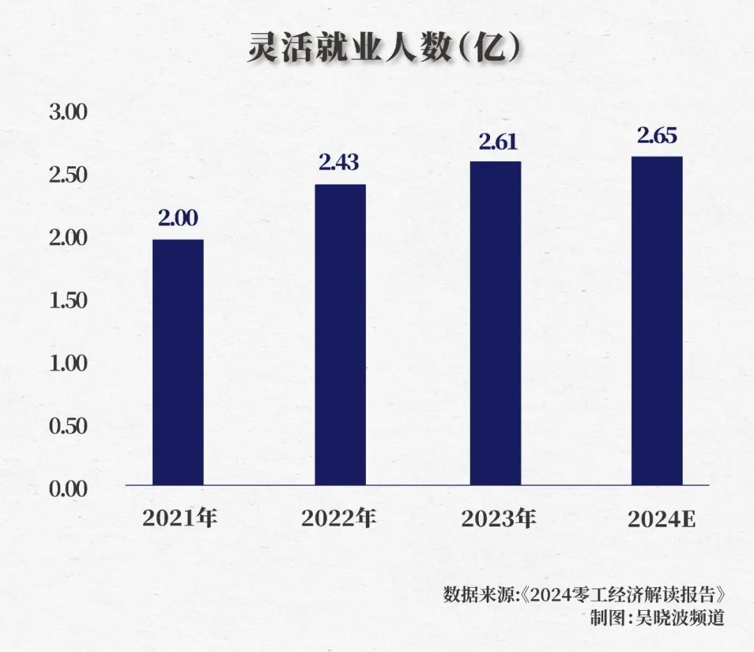 數據顯示,2024年傳統僱傭職員減少200萬,而靈活就業人員已突破2.65億,佔就業人口的31.6%,60%來自縣域;日新增近6000靈活就業者,相當於每天18節高鐵車廂的人集體“叛逃”。而另一邊,零工平臺的GMV同比增長68%。