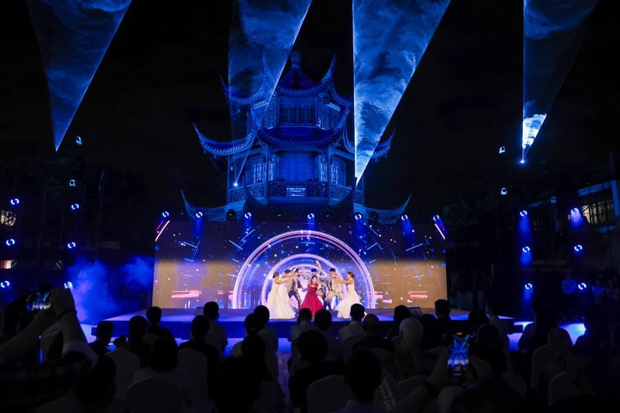 在光影流轉的時空中,光影秀融合4000年的馬橋文化、千年的七寶古韻和今天的閔行科創,渾然一體飄揚在鐘樓上空,展現閔行“創新開放、生態人文、宜居安居”現代化主城區的新戰略、新舉措和新突破。