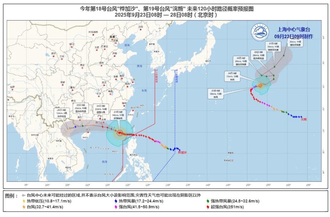 今天10時,“樺加沙”中心距離廣東省陽江市東偏南方向約640公里,強度維持超強颱風級。預計“樺加沙”將以每小時20公里左右的速度向西偏北方向移動,將於24日在廣東深圳到徐聞一帶沿海登陸,登陸時強度可達強颱風或超強颱風級。“樺加沙”強度強,環流範圍較大,又恰逢天文大潮期,會給華南造成嚴重風雨影響。去往當地出差、旅行的朋友需密切關注。