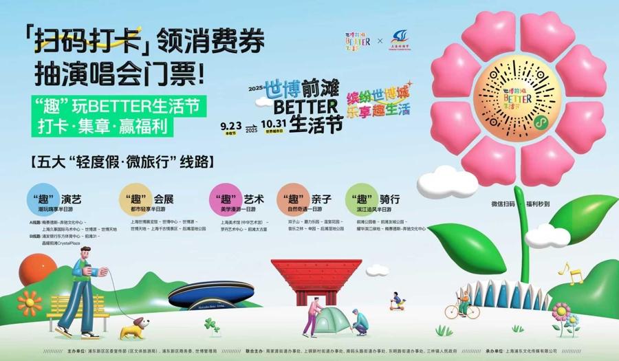 整合世博文旅商體展全域資源,2025世博前灘BETTER生活節今天在世博文化公園啓幕,構建集“可看、可玩、可賞、可購、可享”於一體的城市“輕度假·微旅行”新場景。