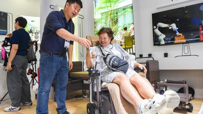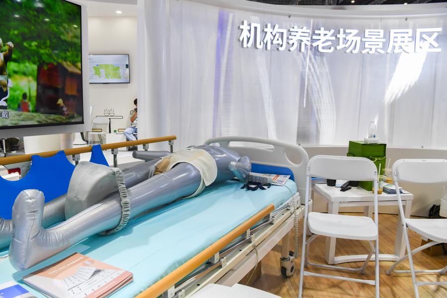一個假人躺在護理牀上,腰腹部穿着一條特殊的米黃色“短褲”,一根軟管連接“短褲”與牀下的智能設備……蘇州伊利諾護理機器人有限公司的展示場景,正是許多失能老人的真實寫照。該項目也入選工信部民政部智能養老服務機器人結對攻關和場景應用試點項目。