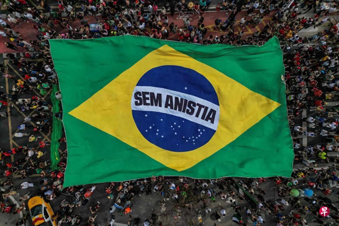 組織者還在抗議現場展開了一面巨大的巴西國旗,長達15米,上面寫着“拒絕大赦”。這一場景無疑是對博索納羅支持者示威的直接回擊,同時也是對當前政治局勢的強烈表態。