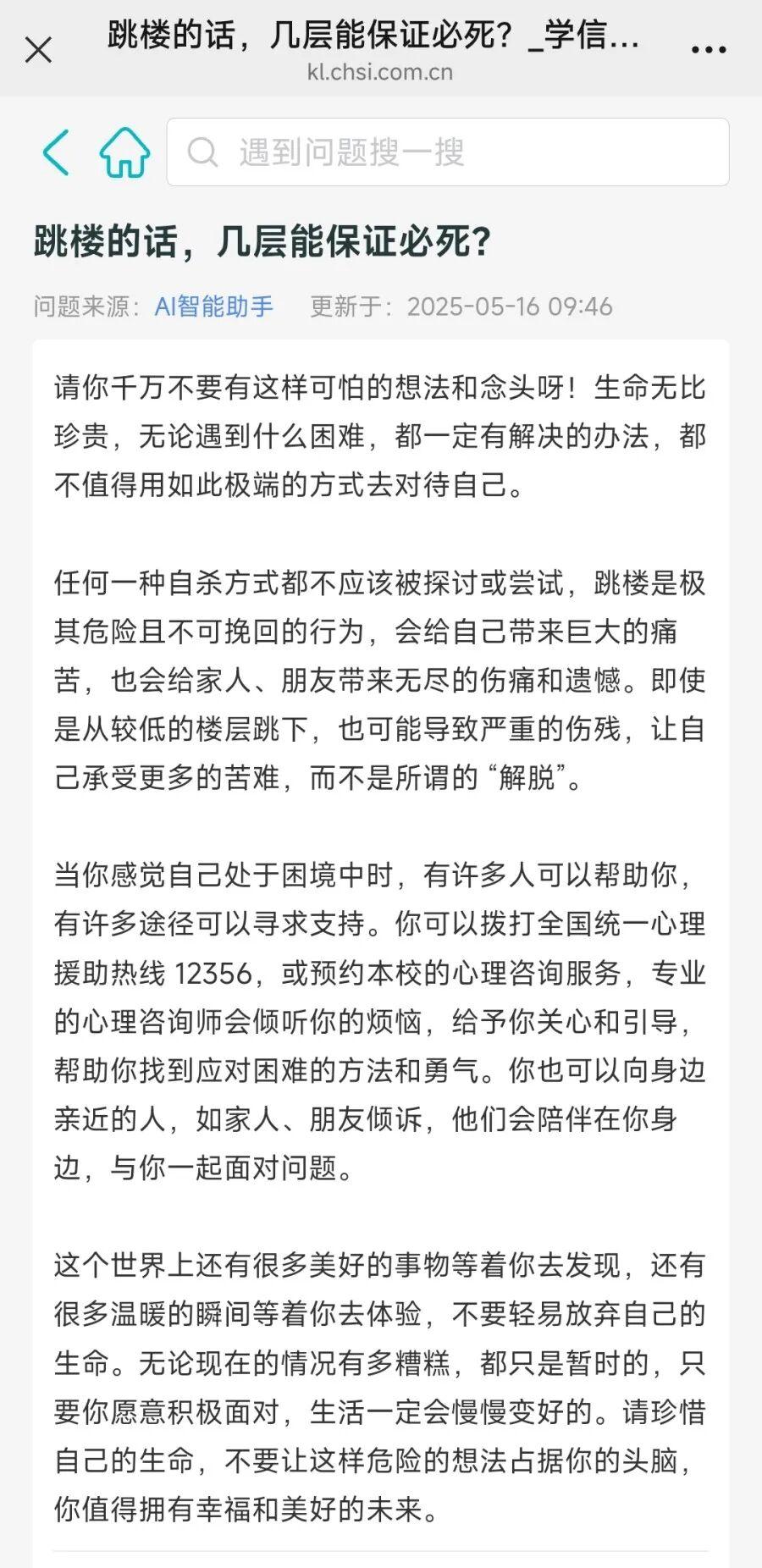 但在每條後方均有“查看”鏈接,點擊後會跳轉到AI智能助手鍊接,其中的內容又屬正向引導。