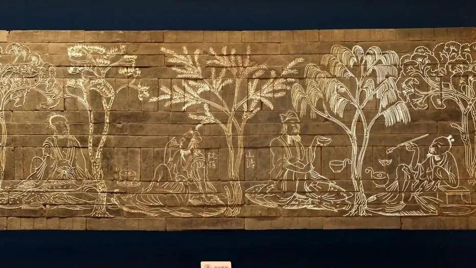 錯版竹林七賢拼鑲磚畫,現藏於六朝文化博物館