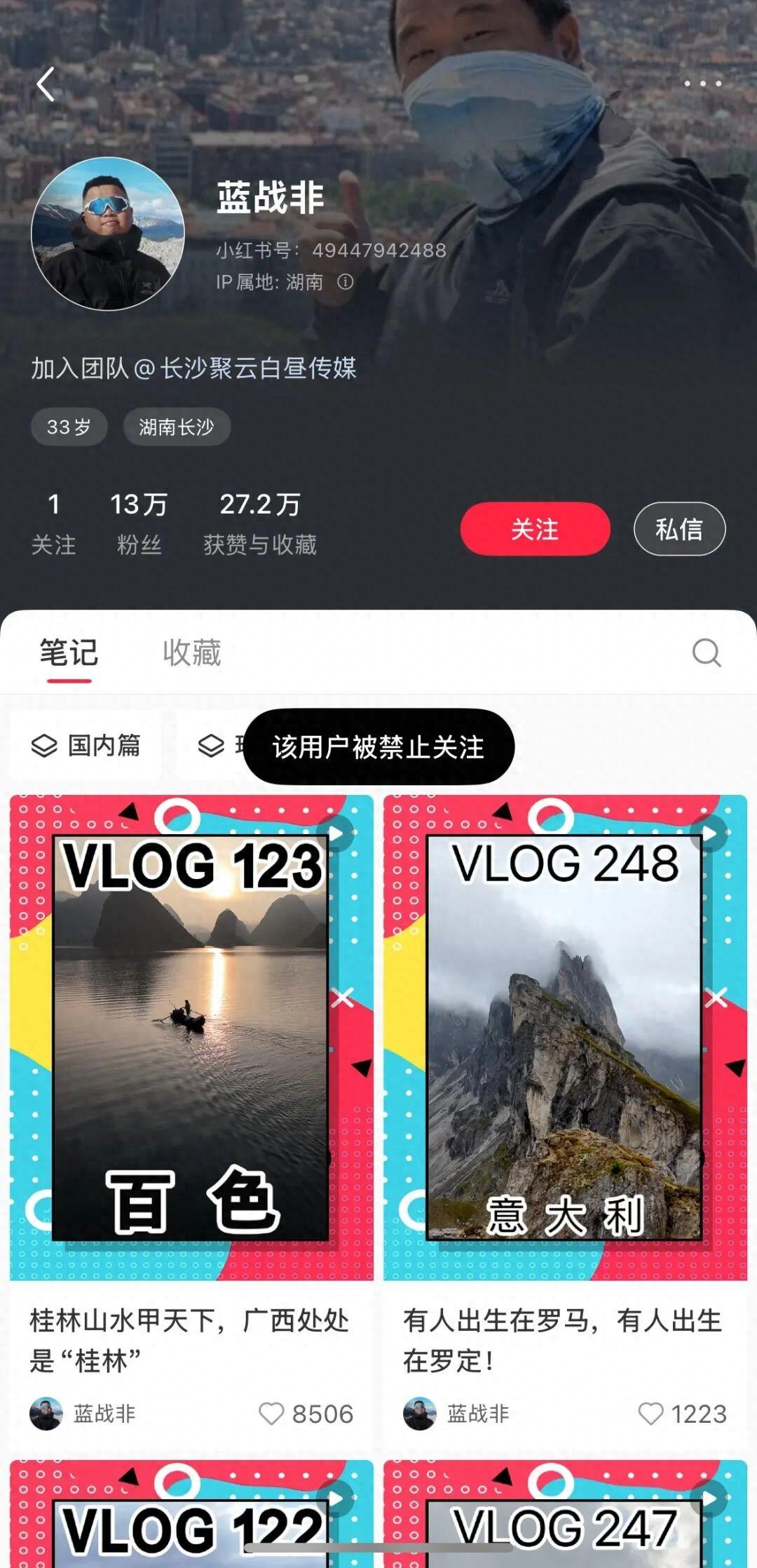 目前,藍戰非抖音粉絲有2494萬,認證是“遊戲主播”,最後一條視頻更新於9月13日,內容是其在意大利旅遊的過程,配文“有人出生在羅馬,有人出生在羅定”。其小紅書粉絲有13萬,最後一條作品更新於9月18日,內容是關於其在廣西旅遊的。在上述兩個平臺,藍戰非賬號均被禁止關注。