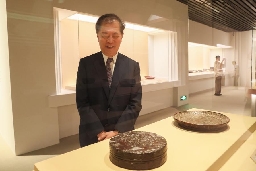 展覽開幕前一天,東京國立博物館館長藤原誠來到上海。中午飛機落地後第一時間直奔上海博物館,一進二樓展廳,就迫不及待走到“寶貝”面前——這些漆器不僅是第一次回中國展出,在收藏地日本也是難得一見。