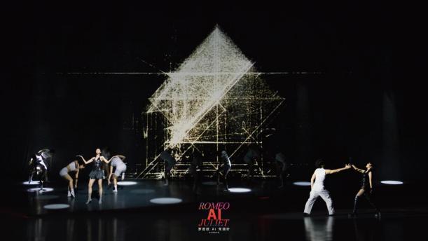 舞蹈總監王亞彬編創的“命運”舞段,是劇中最具震撼效果的記憶點。10名舞者化身“命運的具象”,以緊密交織的陣型構成“無形枷鎖”,他們時而圍堵、時而拉扯,用肢體動作模擬“命運的操控與捉弄”。劉迦與賈斯越則在“枷鎖”中突圍,每一段肢體都帶着“對抗的力量”,每一次踉蹌都藏着“不甘的掙扎”。“羅密歐”試圖以機械的力量衝破陣型,卻被“命運之網”反覆裹挾;“朱麗葉”用柔韌的肢體尋找縫隙,卻似與“無常的命運”博弈。
