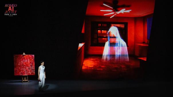 《羅密歐AI朱麗葉》採用“三重時空”的六幕構架,戲劇段落承載人物關係與矛盾推進。1458年的“一見鍾情”、2030年的“浪漫升溫”、2099年的“覺醒抗爭”,既各自成篇又相互呼應。“三個時空的羅密歐與朱麗葉,在同一舞臺空間登場,相互交錯,相互影響。無論是維羅納的月光、洛杉磯的霓虹,還是火星的極光,都無法阻擋真愛的光芒。”總導演葉向說。
