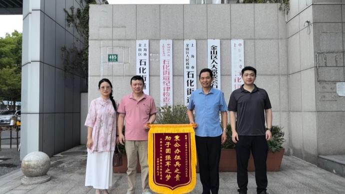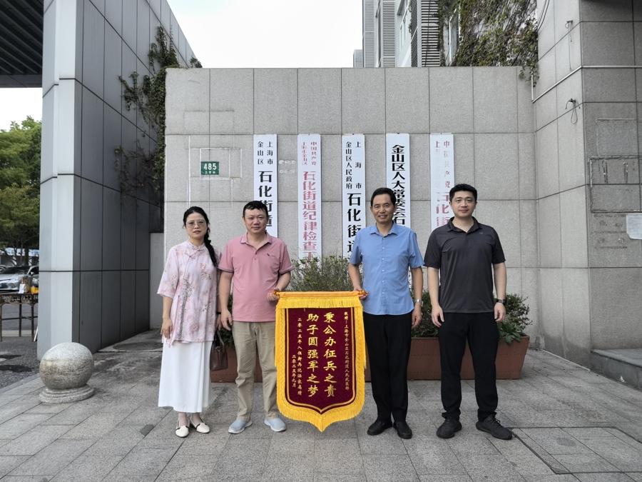 “感謝街道一直以來的鼓勵,孩子終於圓夢了!”近日,一面印着“秉公辦徵兵之責,助子圓強軍之夢”的錦旗送到了金山石化街道徵兵辦公室,送旗的是新兵小沈的父母,在經歷四次報名未果後,終於在今年成功穿上軍裝,成爲一名光榮的解放軍戰士。