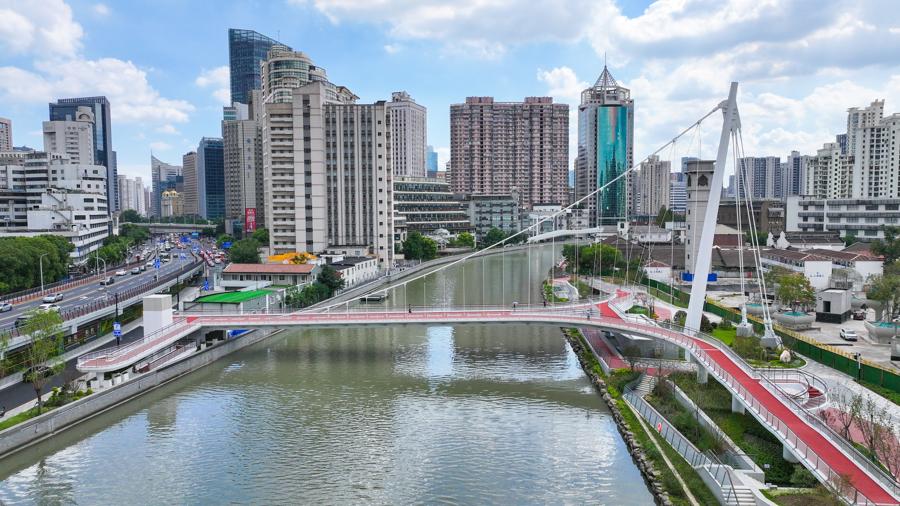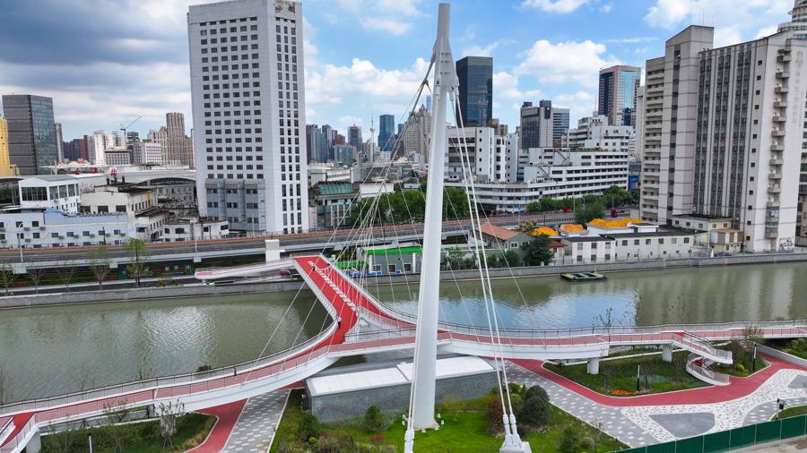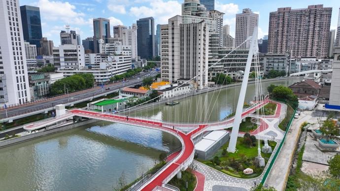 蘇州河上首座獨塔懸索橋今日開放,兩岸跨河通行僅需5分鐘