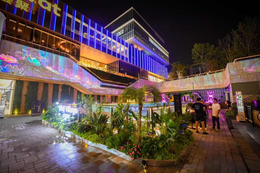 “三圈”佈局則融合了衡復歷史風貌保護區、中山公園商圈、虹橋-古北商圈三大光影空間體系,通過光影藝術與多媒體潮流的結合,爲創意和時尚人羣打造激發靈感、充滿趣味的夜遊體驗,將光影藝術、主題標識與日常生活融合,營造出充滿活力與“煙火氣”的夜市氛圍。