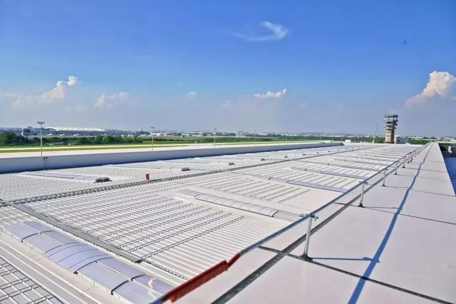 機場作爲能耗“大戶”,低碳節能是此次改擴建的重要考量。市機場集團與市能源集團緊密合作,在東部貨運區打造江蘇首個應用於機場場景的智能微電網項目,能夠有效實現該區域內分佈式可再生能源的消納及能量調度的自動優化控制。“項目建成後,預計每年可發出綠電564萬千瓦時,減少二氧化碳排放5500餘噸。”相關負責人說。該項目在構建光伏、儲能、充電樁等基礎設施,形成源、網、荷、儲一體化的基礎上,進一步打造V2G充電、光儲直柔等示範性項目,爲機場提供了一條可複製、可推廣的交能融合發展樣板。