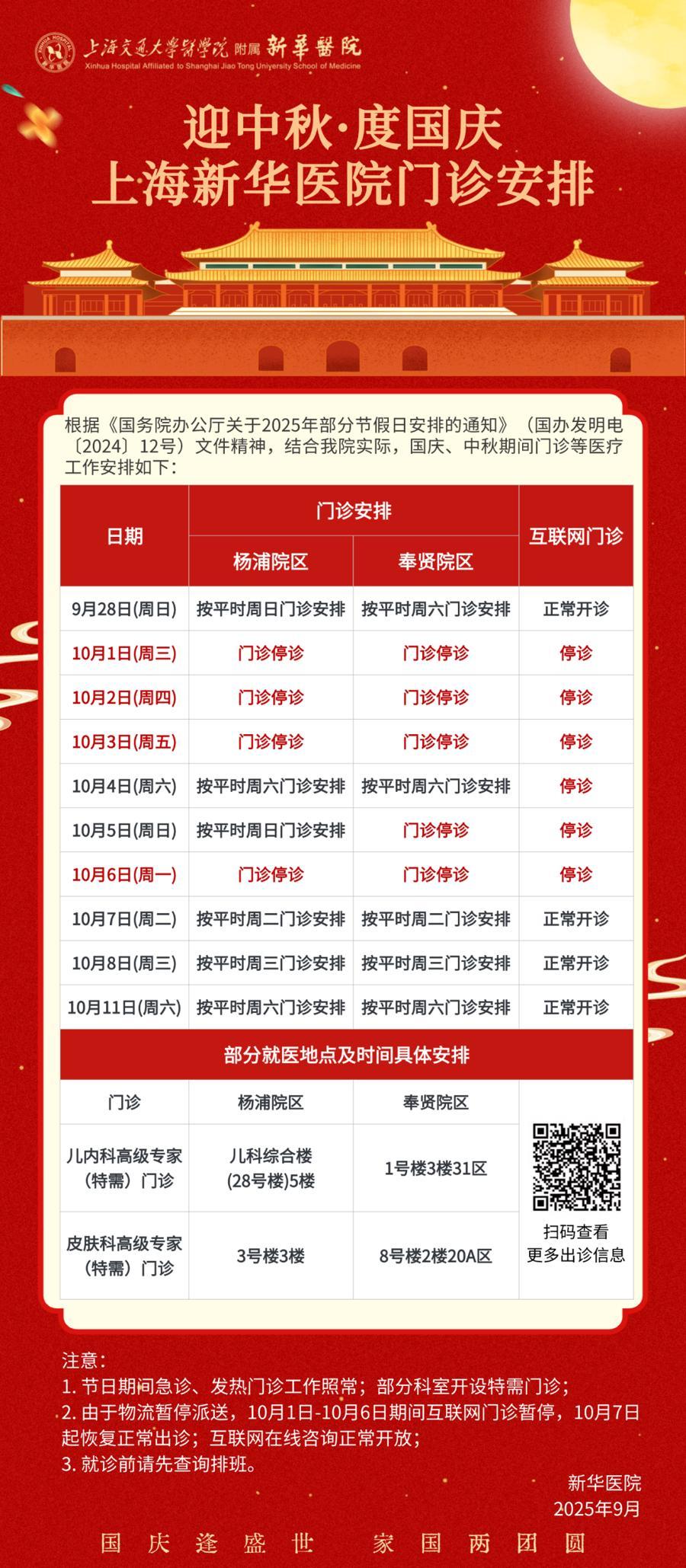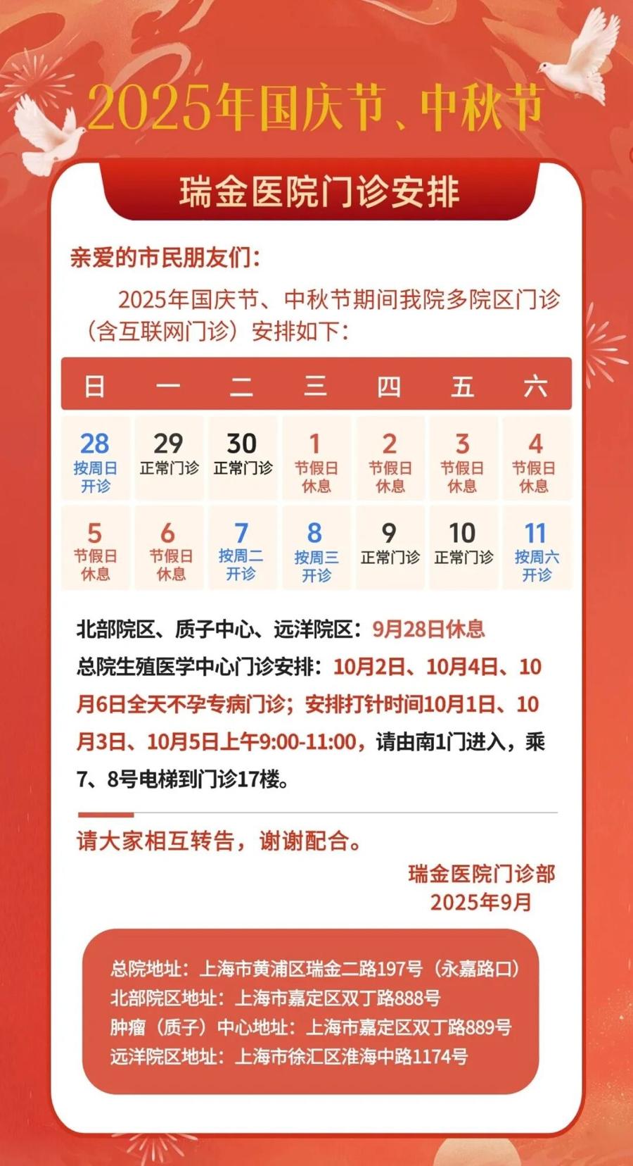 2025年國慶中秋“超長黃金週”將至,上海多家醫院推出“暖心排班”,通過優化門診安排、增加專家出診頻次、強化特色專病門診服務等措施,確保患者在假期也能享受到便捷高效的醫療服務。