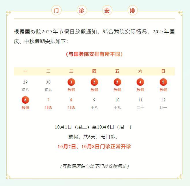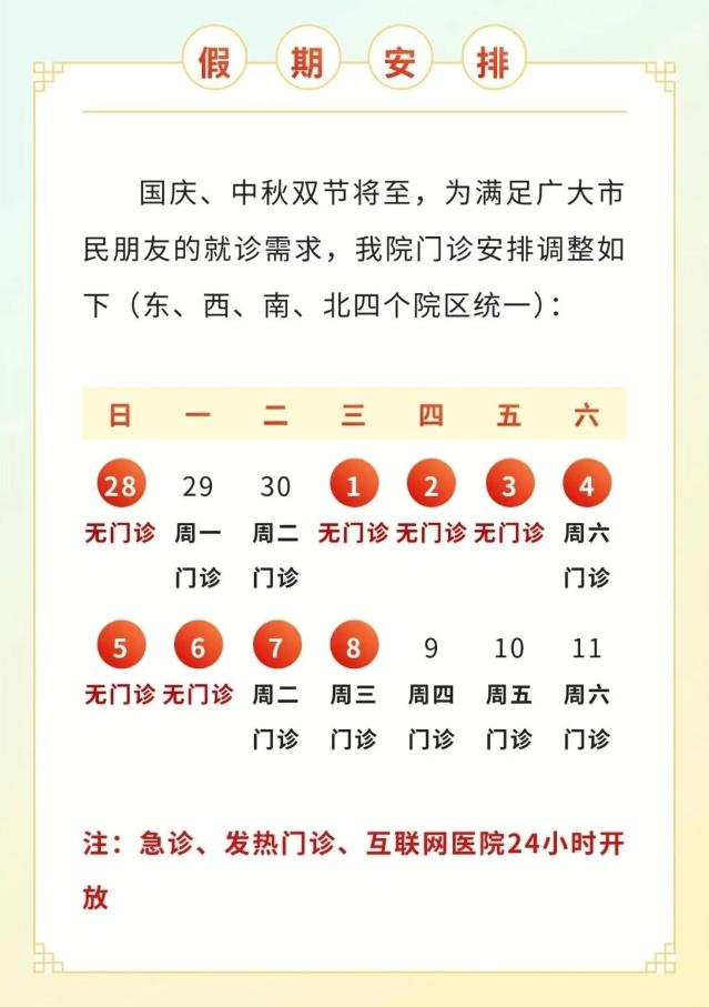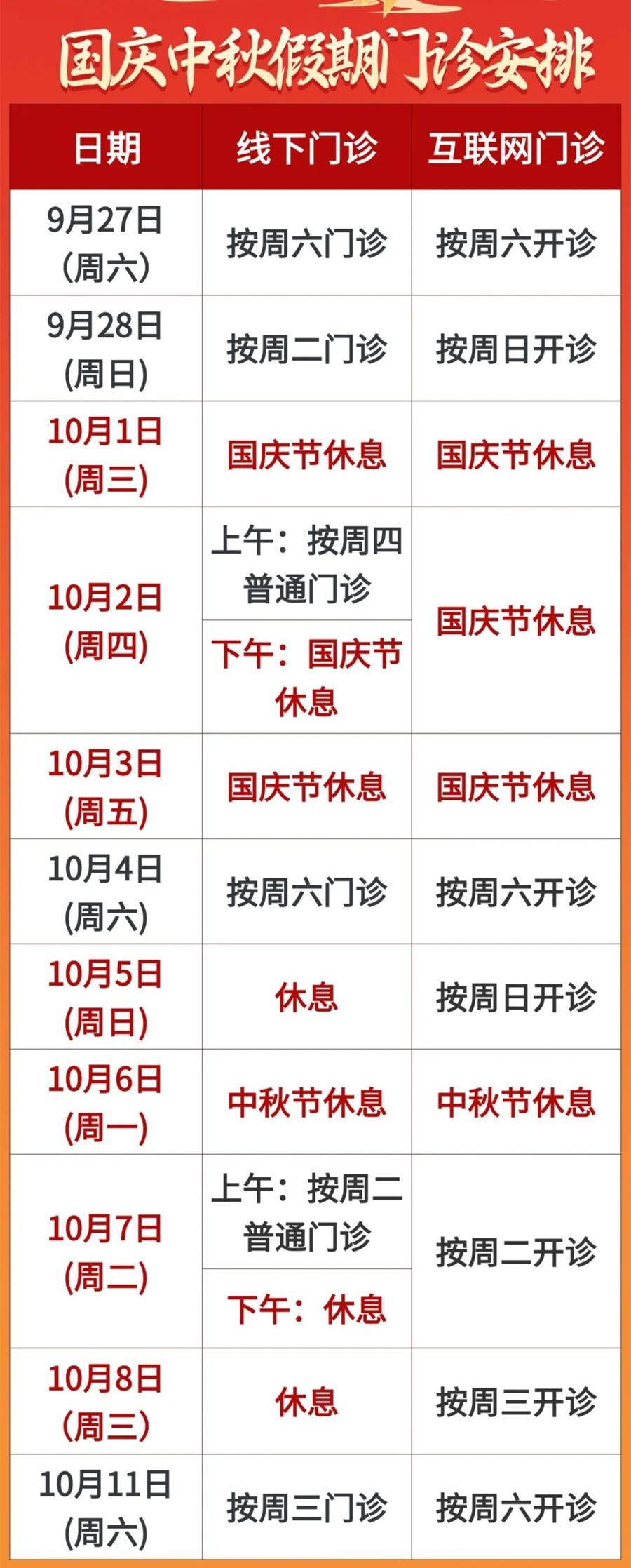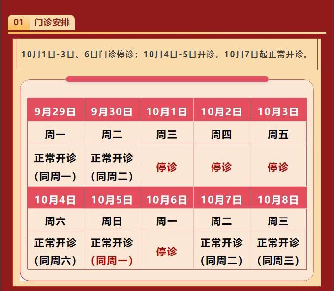 爲此,醫院特意將10月5日的專家門診排班調整爲“週一模式”,以最大程度匹配患者的就醫習慣和需求。