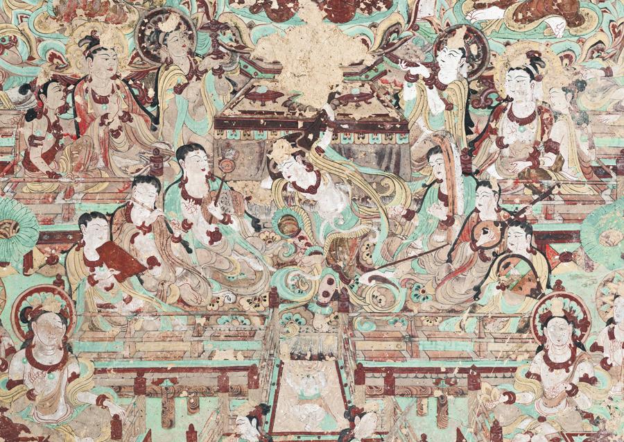 展覽將由四個部分組成。第一部分“千窟梵境”,按照早期、中期、晚期劃分,依次展現一千六百年敦煌石窟藝術的燦爛輝煌,展陳形式包括壁畫、彩塑、樂器,以及高度還原的複製洞窟。