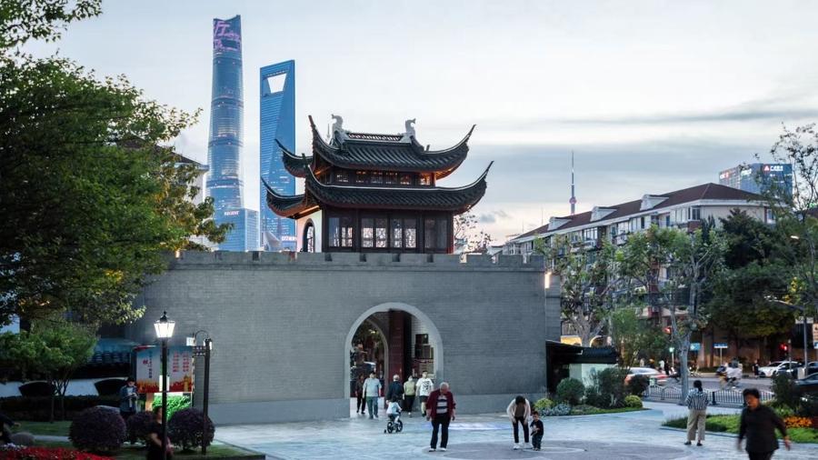 改造後的梅園公園,恢復了入口古城牆的青磚立面,市民可透過城牆眺望陸家嘴“三件套”,感受古典亭臺與現代高樓交相輝映的獨特景觀。而公園北門的MOUTHFEEL透明玻璃咖啡房採用玻璃盒子和連廊的設計,通過場景升級與業態調整,將陸家嘴咖啡文化融入古典園林,以共享開放理念,爲市民提供品咖、賞遊、交友的公共空間。