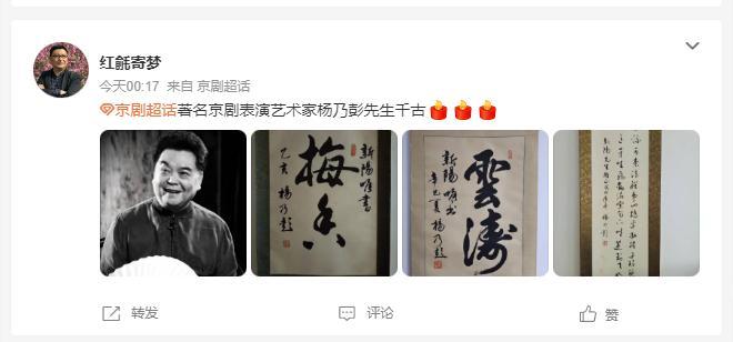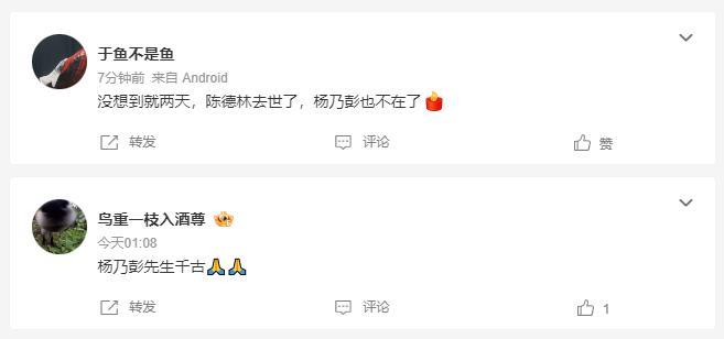 楊乃彭去世的消息傳出後,衆多網友、戲迷紛紛發文悼念。