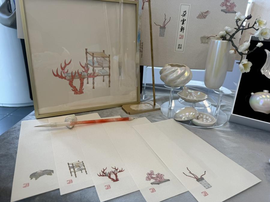 上海朵雲軒有限公司今年新開發的“字字珠璣文房系列”獲得了2025上海金榜伴手禮。“這是朵雲軒的現代書房美學實踐。”朵雲軒門店副總經理彭琴介紹,這一系列產品以“海洋意象+傳統文房”爲核心設計邏輯,將古代書畫、名物中的海珍元素如貝殼、海螺等,融入現代文房雅器,兼顧傳統韻味與當代審美。記者在現場看到,這些產品都是“多功能”的,筆筒可以當做花瓶,貝殼瓷墨蝶可以放首飾,賦予產品靈動、雅緻的現代氣質。