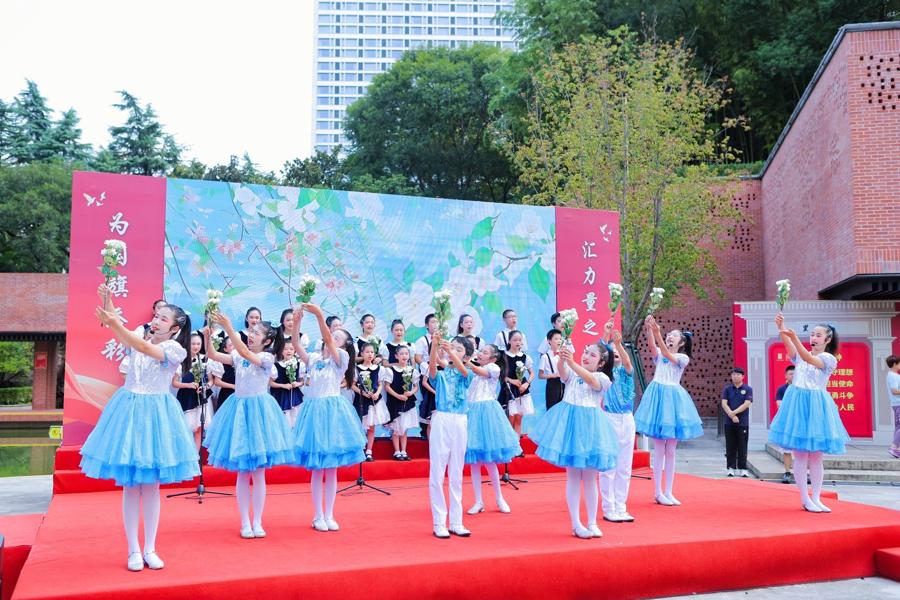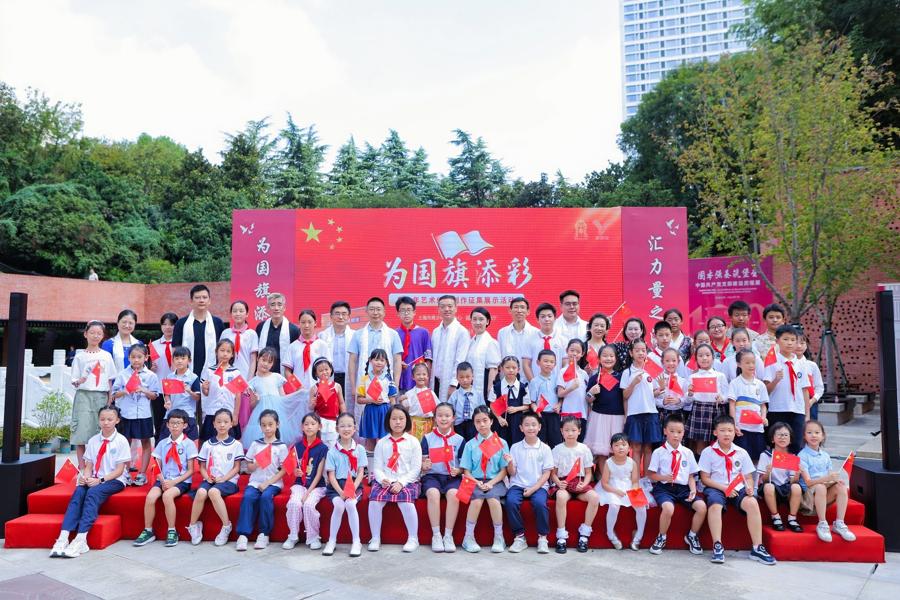 在中華人民共和國成立76週年、新疆維吾爾自治區成立70週年到來之際,由中共四大紀念館國旗教育展示廳與上海市青少年活動中心聯合主辦的“爲國旗添彩”青少年藝術作品創作徵集展示活動,9月27日上午在中共四大紀念館國旗廣場舉行。