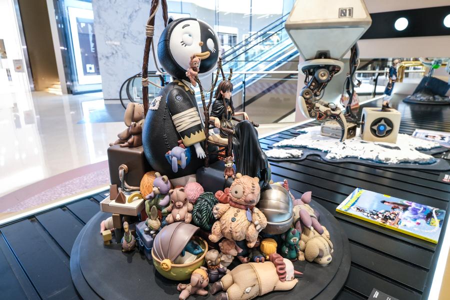 此次快閃以雕塑與場景藝術爲“破壁密鑰”,首次將劉慈欣筆下的科幻鉅作從書頁中喚醒。藝術家陳嫣冉以其擅長的齒輪、廢土等元素爲核心,將“以玩重構文明”的內核注入實體,書中的新紀元圖景化作眼前的場景裝置,經典角色凝成可近觀的雕塑,曾經只能在文字裏感知的“超序之地”與生存勇氣,都能讓觀衆在現場親身沉浸感受。