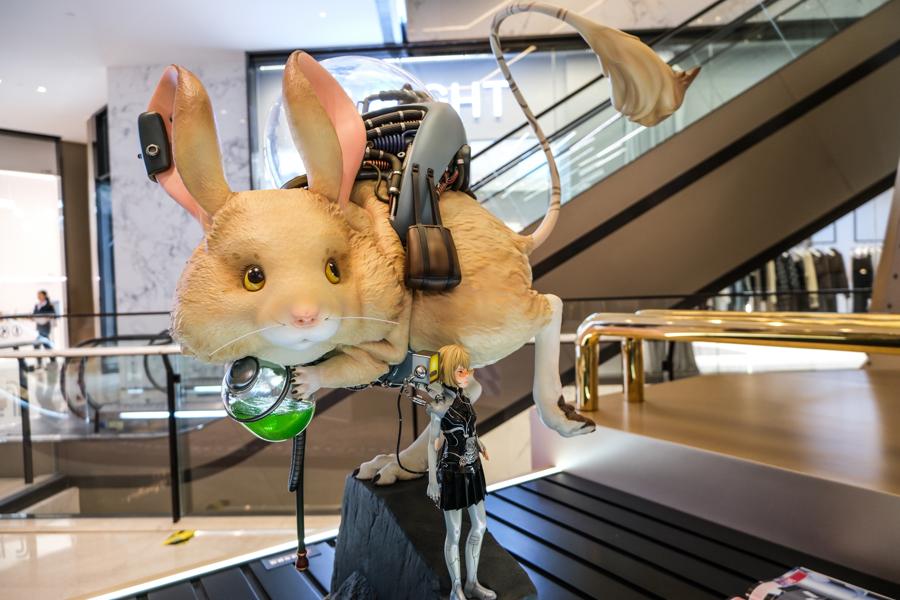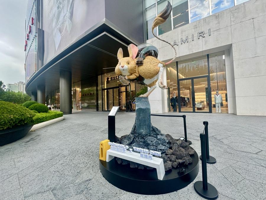 作爲本次快閃的核心靈魂,陳嫣冉爲錦滄文華廣場量身打造的“超序之地·引水獸沙鼠”裝置,以3.6米的龐大身軀矗立於戶外西側廣場,成爲連接過去與未來的視覺奇點。