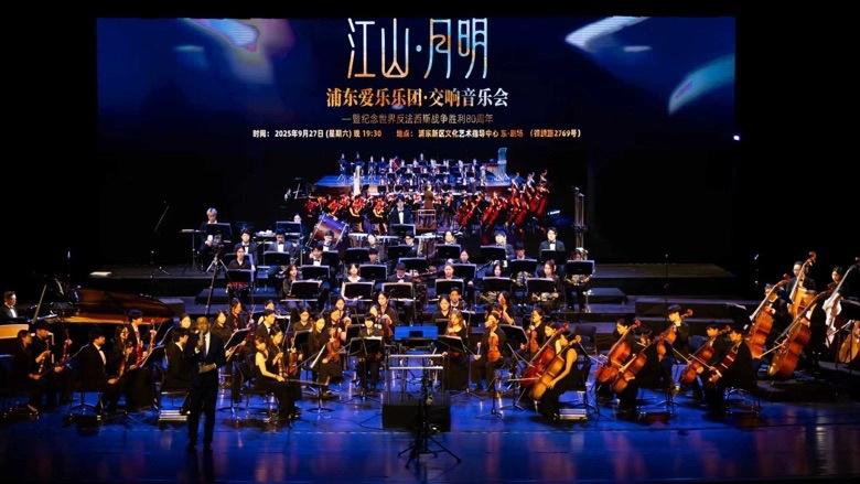 浦東愛樂樂團昨晚在浦東新區文化藝術指導中心東·劇場呈現“江山月明”交響音樂會,莊嚴紀念世界反法西斯戰爭勝利80週年。