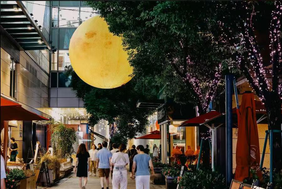 作爲假日活動的一大亮點,“大地生活節”主題市集將持續開展至10月12日。現場集結20餘個非遺手工藝品牌,非遺翻花紙藝、手工羊毛氈製品等傳統手工藝集中亮相,讓消費者在互動體驗中增進對中華傳統文化的認知與喜愛。現場特別設置的“超級月亮”巨型光影藝術裝置,已成爲傳遞中秋團圓文化、烘托節日氛圍的熱門打卡點,吸引衆多家庭駐足留念。