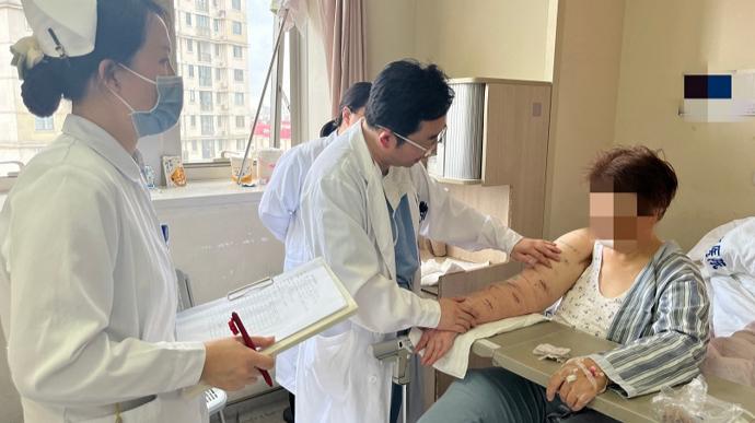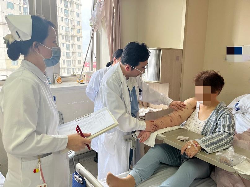 三個半小時,5個吻合口,出血不到5毫升。術後第三天,張大姐試着抬手,驚喜地喊:“我的手能碰到後腦勺了!”一週後複查,右臂臂圍差從4釐米縮到1釐米。