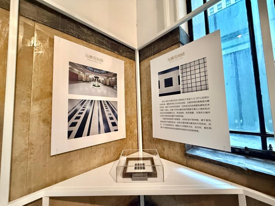 步入一層大廳,大廳中央的白玉蘭裝置,與鐘樓的旗杆位置對應,是20世紀20年代上海地理原點座標所在。大廳特別設置海關大樓記憶留存處,觀衆可通過記憶之窗、記憶膠囊、記憶留聲機等裝置參與互動。在三層電梯間及二、三層樓梯轉角處,設置了建築修繕展項,通過海關大樓建築模型、“海關鐘聲”沉浸體驗區、海關大樓年表與圖紙、建築材料工藝展示等,建立觀衆與建築的對話。