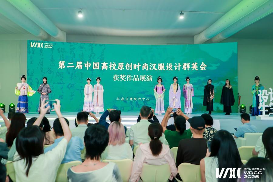 “第二屆中國高校原創時尚漢服設計羣英會”頒獎典禮現場,金銀銅獎作品首次亮相,作爲上海高校服飾文化育人聯盟重要活動之一,大賽將持續爲行業輸送兼具文化素養與創新能力的新銳設計力量,讓優秀傳統服飾文化生根發芽。