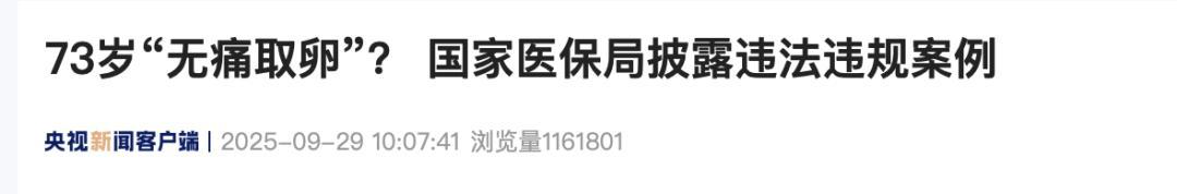 73歲“無痛取卵”? 國家醫保局查處“異常”案例