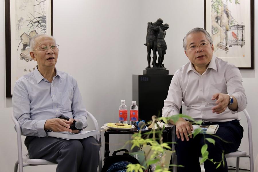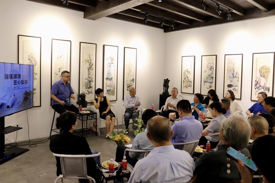 互動交流環節,閔行區政協二屆、三屆主席黃玉鳳,中國作家協會會員、閔行區政協委員吳玉林,全國政協委員、上海朵雲軒集團總經理朱旗,中國美術家協會會員、閔行區美術家協會副主席馮念康,上海七寶古鎮實業發展有限公司總經理朱玲,中國玉文化研究會副祕書長、爍果文化藝術館館長蔡黎,七寶吉津齋主理人徐永松,令竹竹器館主理人陳琪等嘉賓結合自身領域,爲七寶文化創意的發展出謀劃策,交流中碰撞出諸多創新思路。