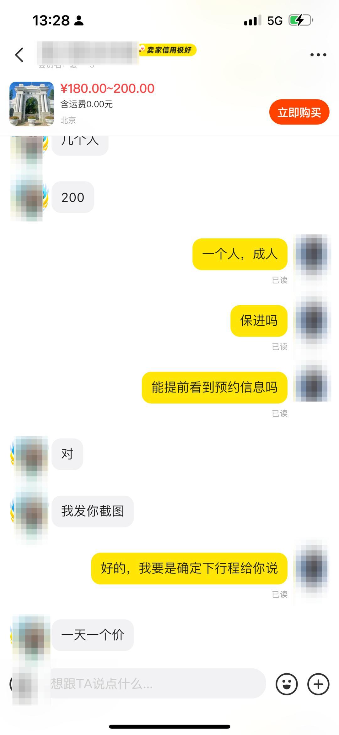 記者聯繫上一名賣家,賣家表示,國慶期間仍然可以進入校園,當前收費是每人200元,但他建議有意向的人儘早下單,因爲後續幾天價格可能逐日浮動,無法保證不會進一步漲價。他還承諾,凡是拍下的訂單都能確保進入校園,且相關費用僅在訪客順利入校後才需支付。“預約成功後我會把信息直接發給你,從手機上就能看到,當天直接拿身份證就能進去。”