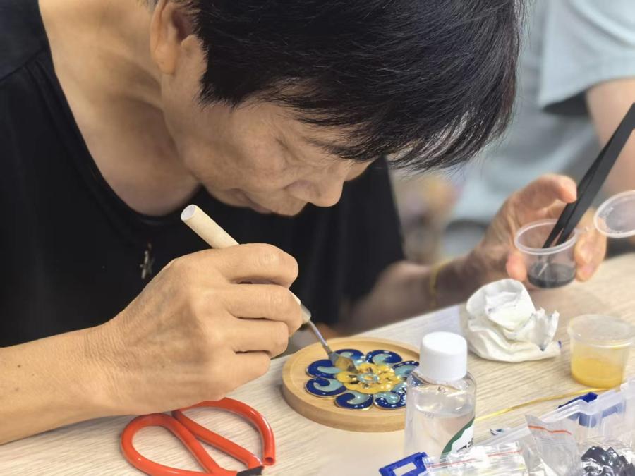南京東路街道社區文化活動中心裏,72歲楊阿姨小心翼翼爲圖案填充釉料:“雖然手有點抖,但這正是掐絲琺琅匠心之處,每件作品獨一無二。”據透露,南京東路街道將繼續推出系列人文科普活動,爲讀者提供更多元優質的文化服務,助力非遺煥發新活力。